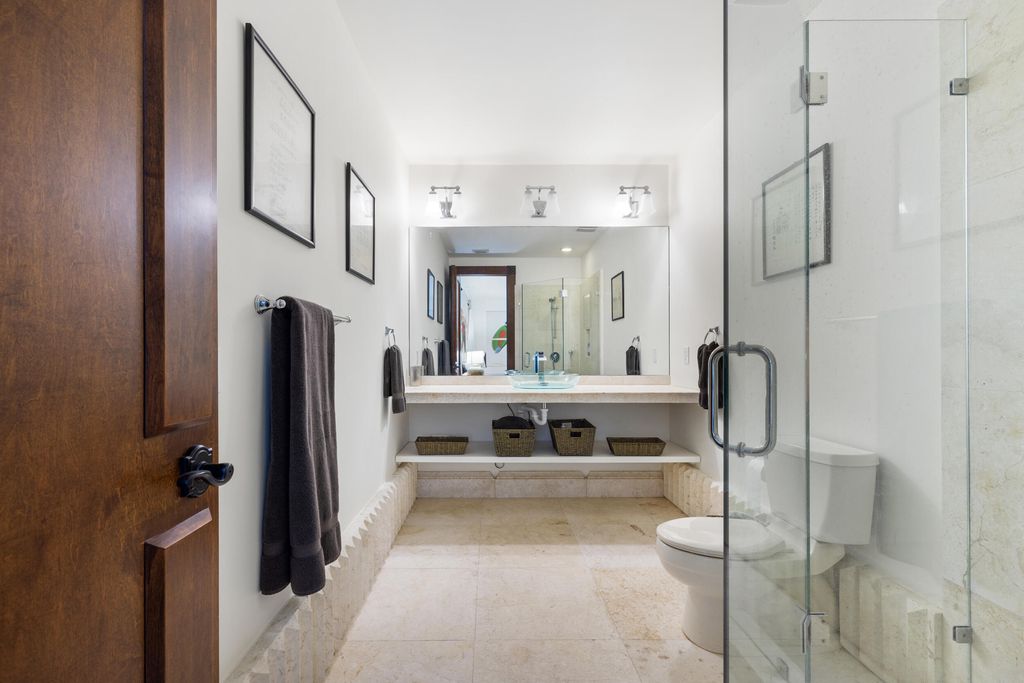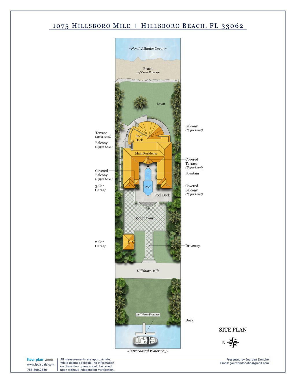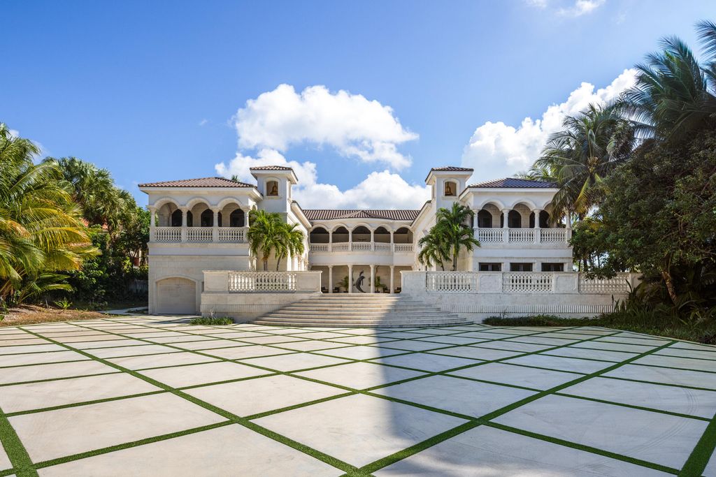 A rare opportunity on prestigious Hillsboro Mile, an extraordinary ocean-to-Intracoastal estate offering 125 feet of direct ocean frontage and 125 feet of deepwater Intracoastal frontage with private dock. Set on an expansive 57,349 sq ft property, this unique compound stretches from the Atlantic Ocean to the Intracoastal Waterway, delivering the ultimate South Florida waterfront lifestyle. The main residence offers 12,790 sq ft of living space (14,935 total) with 6 bedrooms, 7 full baths, 2 half baths, and a 4-car garage. Designed for entertaining and multigenerational living, the home features dramatic vaulted ceilings, exposed beams, and warm architectural details including rare Dade County pine and custom solid wood doors, creating a timeless mid-century modern aesthetic. Walls of glass frame tropical gardens and ocean views, while expansive living areas open seamlessly to outdoor spaces. Amenities include a saltwater pool, expansive gym, art studio, putting green/driving range, home theater, bunk room with 10 beds, and a rooftop deck ideal for sunset gatherings overlooking the Ocean & Intracoastal. For boating enthusiasts, the deepwater Intracoastal dock currently accommodates a 40-50 ft vessel and can be extended for a yacht up to approximately 100 ft, with no fixed bridges and quick access to both Hillsboro and Boca inlets. The Intracoastal side of the property features an additional 13,817 sq ft of lawn, offering exceptional flexibility for a guest house, tennis court, additional garages, or a private waterfront retreat, creating a true family compound without impacting the main residence. Located in the private seaside enclave of Hillsboro Beach, a quiet barrier-island town with its own police department and no public beach access, this estate offers exceptional privacy, security, and direct access to both the Atlantic Ocean and the Intracoastal Waterway. A legacy property combining rare land, boating access, and an iconic location along one of South Florida's most exclusive stretches of coastline.