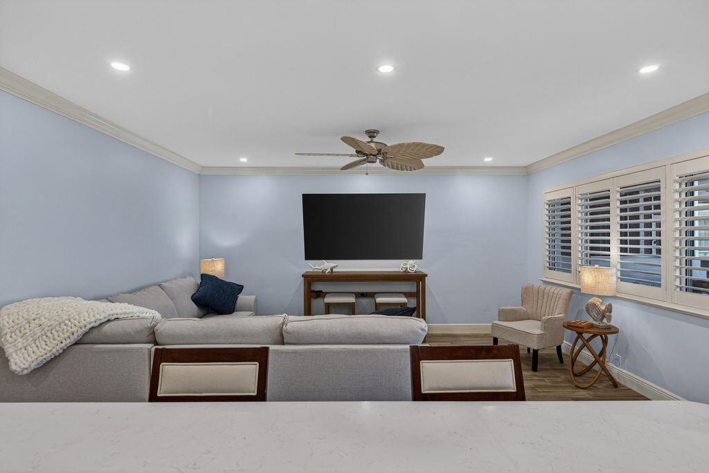 Don't let the square footage fool you. This unit is truly remarkable! Fully renovated & reimagined layout provides for optimal use of space & full enjoyment w/ an incredible Intracoastal view + beach access. 2 beds & 2 baths, open kitchen, wood-tile flooring, Impact Windows/Doors, updated bathrooms, new electrical & plumbing, tankless water heater, plantation shutters & more! TWO PRIVATE PATIOS: ONE FOR THE SUNRISE & ONE FOR THE SUNSETS ! Stunning Intracoastal views, private beach access, resort-style amenities (pool, 9-hole putting green, shuffleboard, beach, storage, & tropical grounds. The building has a new seawall, roof, fresh paint, completed 50-year inspection, all assessments paid. Enjoy the perfect blend of luxury w/ private beachside chairs & the Intracoastal pool & facilities The property also boasts a private 9-hole putting greens, same floor laundry, deeded storage unit, immaculately kept grounds, and so much more that enhance the resort-like atmosphere.