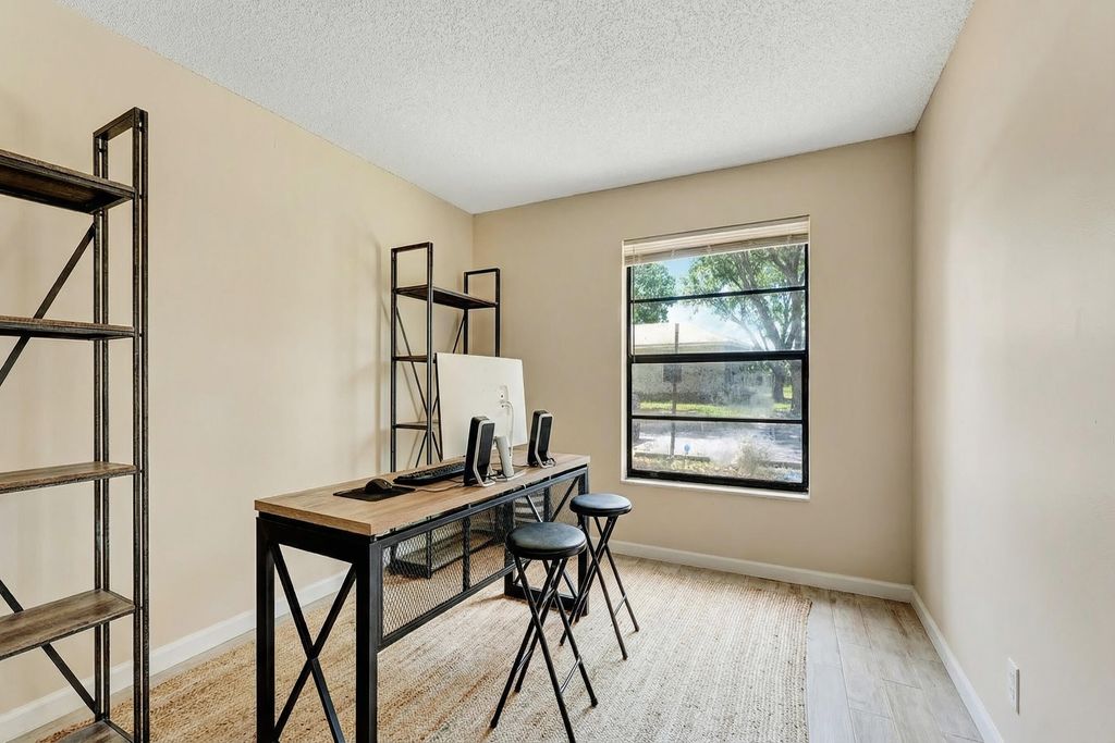 Welcome to residence 109 at the all age community of Bent Tree West in Boynton Beach. This beautifully renovated 2 bedroom, 2 bathroom first floor residence is designed for those who appreciate elevated living. An open floor plan unfolds with seamless ceramic flooring and an ambiance of understated luxury enhanced by custom LED lighting that creates a bright, inviting atmosphere throughout. The chef's kitchen is appointed with quartzite countertops, stainless steel appliances, and custom wood cabinetry. The primary suite is a private retreat with dual closets including a walk in, and a spa inspired shower. A covered screened patio invites quiet mornings, and the feeling of your own secluded garden escape. Residents enjoy a gated lifestyle with resort caliber amenities including a pool, fitness center, social clubroom, billiards lounge, and manicured grounds. Ideally located just 10 minutes from the beach and 7 minutes to I 95. For the outdoor enthusiast, charter a private fishing boat, enjoy endless sunsets on a tiki boat, or rent a jet ski for daytime adventure or start your mornings at Marina Cafe with a renowned breakfast or visit Second Rodeo in downtown Boynton Beach. A/C 2022, water heater 2024. Please note pets, trucks, and commercial vehicles are not permitted, and rentals are restricted for the first two years of ownership. A rare opportunity to own a turnkey residence that feels far beyond its price point. Schedule your private showing today.
