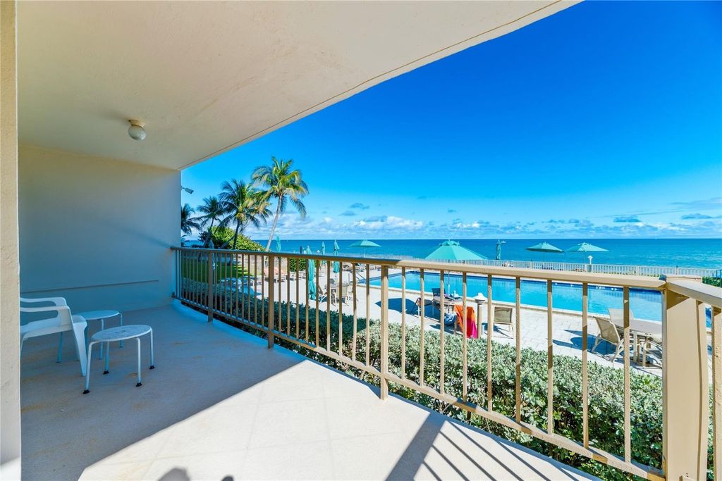 Spacious three bedroom, two bath corner unit located on the prestigious Hillsboro Mile, directly on the sand with breathtaking ocean and pool views. The third bedroom is currently open to the living area, creating an expansive, light-filled layout, but can easily be enclosed to restore a private bedroom or office. Enjoy the unique combination of direct oceanfront living and serene pool views in one of South Florida's most exclusive communities. The unit provides the perfect combination of relaxation, functionality & entertainment space. This oceanfront condo is ready for your personal touches, offering a rare opportunity to customize your own beachfront retreat. The Landmark offers many amenities: oceanfront pool, exercise room, private beach access & security at front desk and fob entry.
