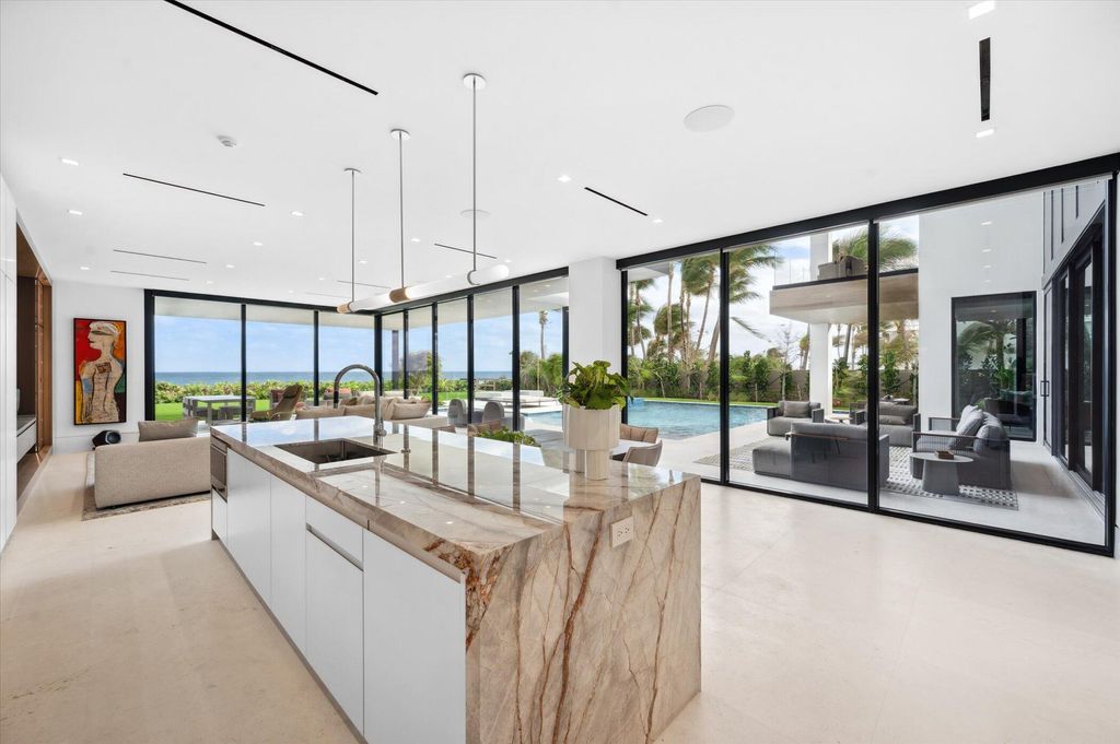 Experience the pinnacle of luxury living in this exceptional, MOVE-IN-READY residence that blends sophisticated design with cutting-edge features. This turnkey property offers an unmatched lifestyle, with breathtaking panoramic views of both the private ocean and Intracoastal waters surrounding the entire estate. Wake up each day to a serene waterfront horizon in a home that truly defines elegance and exclusivity. This brand new built home is being sold TURN-KEY, so simply bring your clothes and personal items. 999 Hillsboro is built like a fortress using the latest building code with waterproofed concrete exterior and hurricane resistant impact doors/windows. The matching porcelain exterior complements the 74-foot lap saltwater pool, making this home not just a place to live, but a With nine AC units and a full-house generator, comfort is guaranteed year-round. The lavish kitchen, featuring white roots marble and Neff cabinets, is a culinary dream, while the D'kor custom furniture and oak hardwood floors elevate the aesthetic to new heights. Enjoy seamless control over your environment with Lutron surround AV system lighting and Savant app technology for music, doorbell, and security cameras. This home boasts an impressive 8-car garage (located on the first floor) with a custom vehicle turntable, a private "commercial grade" elevator connecting all four floors, and a 100-foot dock with 3-phase power. This property is ideal for boating enthusiasts eager to explore the Atlantic Ocean or venture to the Bahamas. With the Hillsboro Inlet being just minutes away, enjoy the crystal blue water incoming tide. Not to forget, this lot is located on a NO WAKE ZONE! With breathtaking views of Florida's magical sunrises and sunsets, this property is truly one of a kind and rarely available. Don't miss out on this once-in-a-lifetime opportunity to own a home (Turn-Key) that stands alone in the market. Experience luxury living at its finest