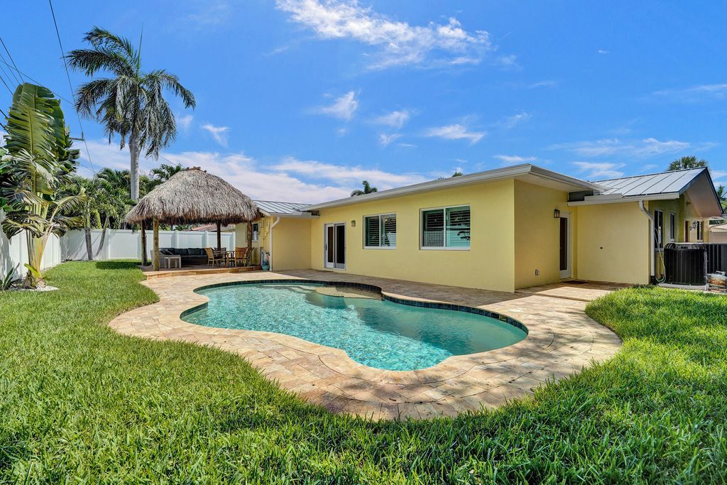 Live the ultimate East Boca lifestyle in this stunning, move-in ready home just minutes from the beach and located in one of Boca Raton's top-rated school districts. With no HOA, this property offers rare freedom in one of the area's most desirable neighborhoods.Designed for both comfort and entertaining, this 3-bedroom, 2-bath concrete block home features a sprawling floor plan with multiple living areas, a huge chef's kitchen with newer appliances and a bonus room off the kitchen perfect for an office or playroom. The primary suite boasts a brand-new master bath (2025), while recent upgrades include a remodeled laundry room (2025), all new interior doors (2025), and custom closets throughout.Step outside to your private backyard paradise with a custom pool, tiki hut, child