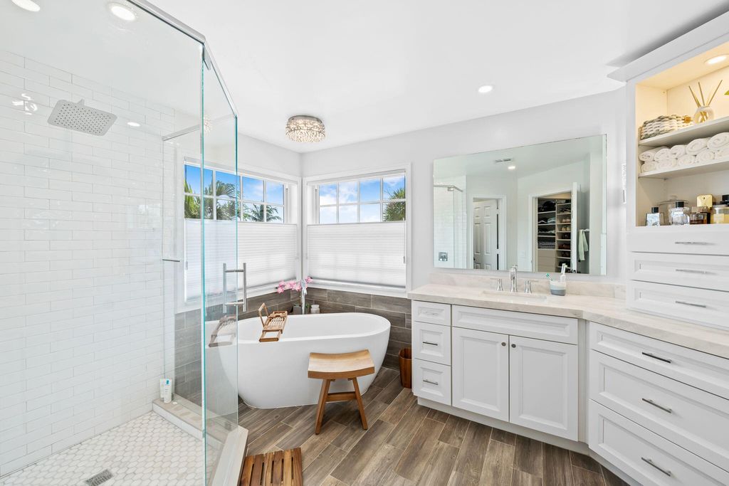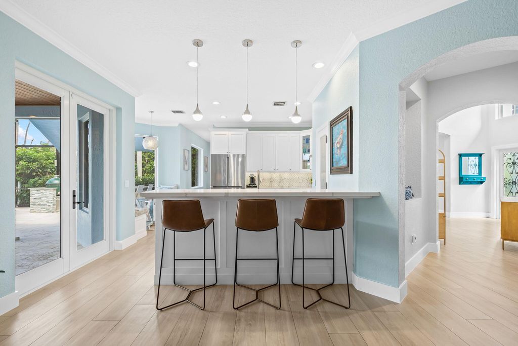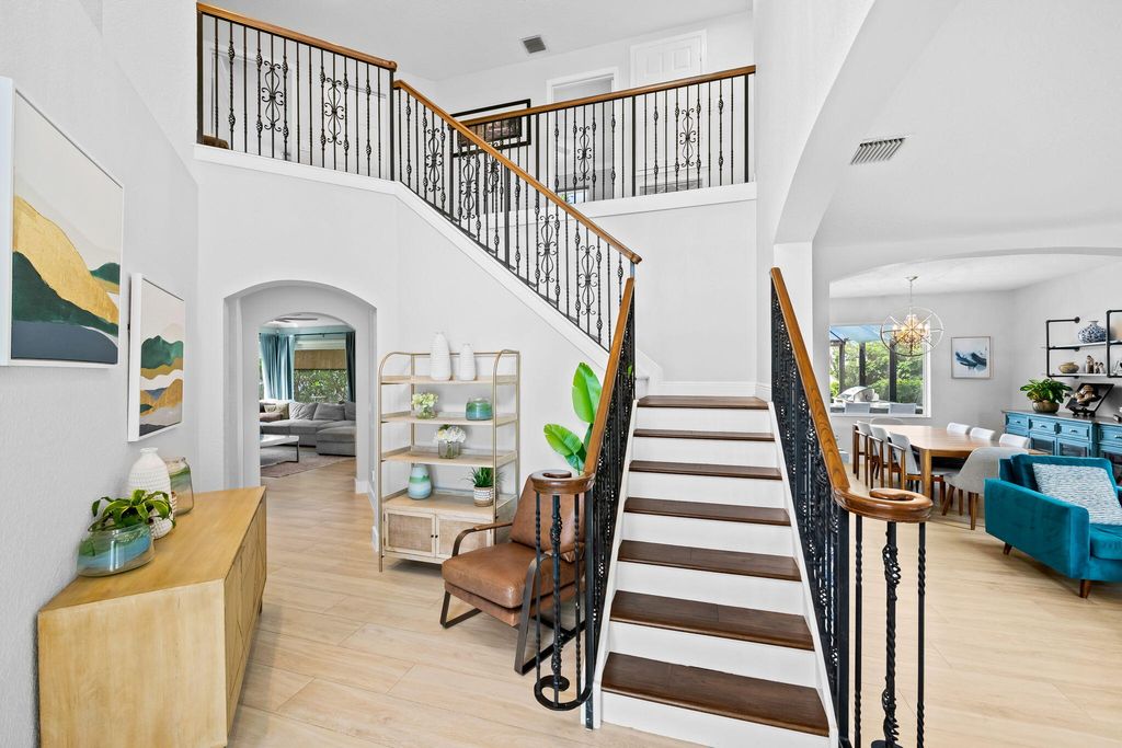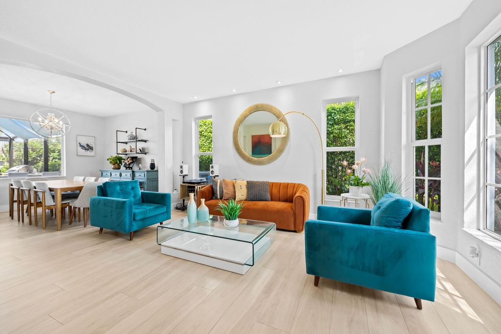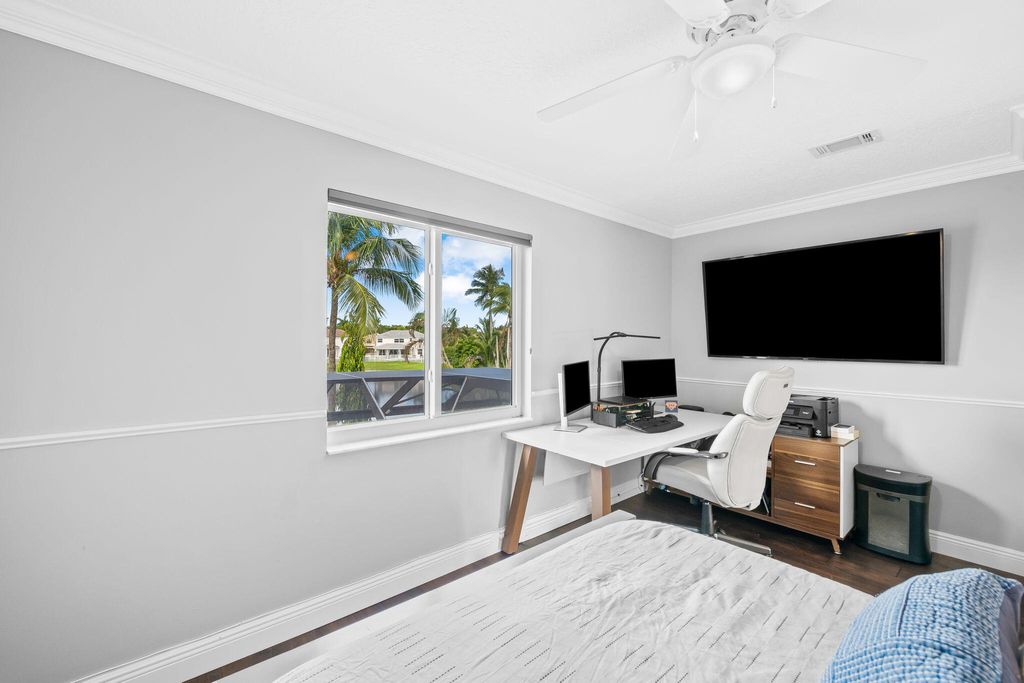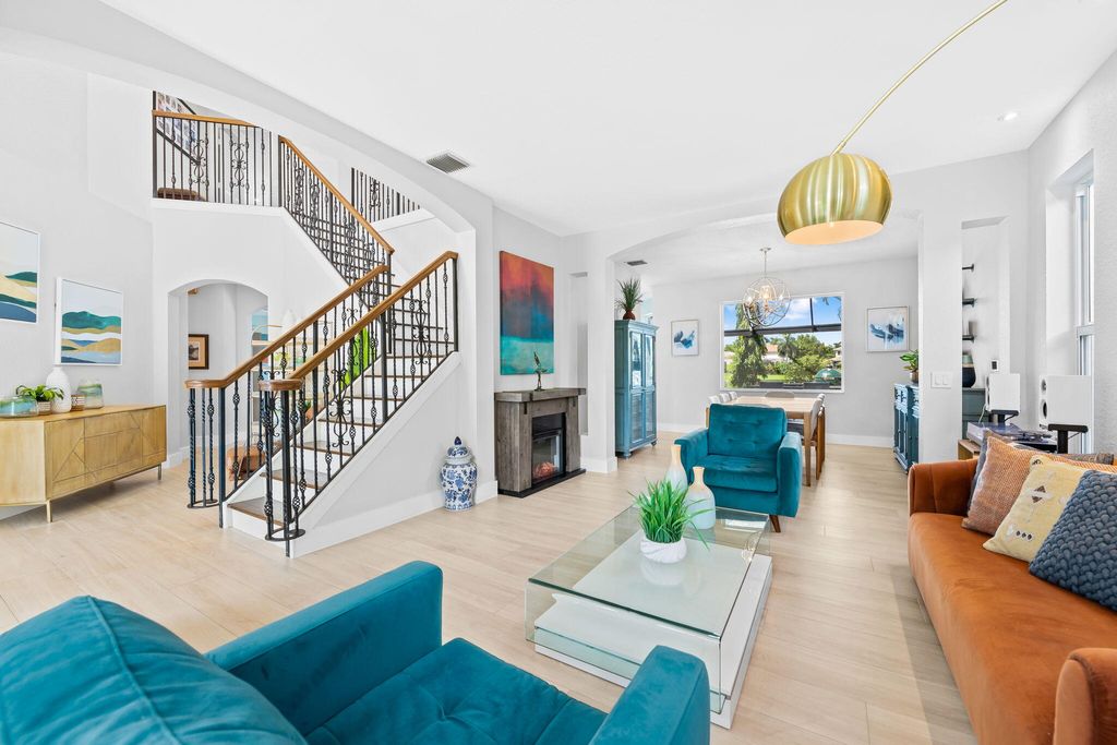 This beautifully renovated home in the desirable Waterways at Boca Winds community offers 4 spacious bedrooms, 2.5 bathrooms, and a 3-car garage on a beautiful lake view lot. Thoughtfully upgraded with wood look tile floors in the main floor living areas and engineered wood floors on the stiars and second floor. Renovated chef's kitchen equipped with Bosch & KitchenAid appliances. Enjoy Martin Logan in-wall theater speakersThe backyard is an entertainer's dream, designed for year-round Florida living. Enjoy a Pebbletec-refinished heated saltwater pool (2025) with Jandy variable drive pump and iAqualink automation, a travertine pool deck, hurricane-rated screen enclosure with LED lighting, and a covered patio with cedar ceiling & outdoor TV wall, summer kitchen and fans. Click for info