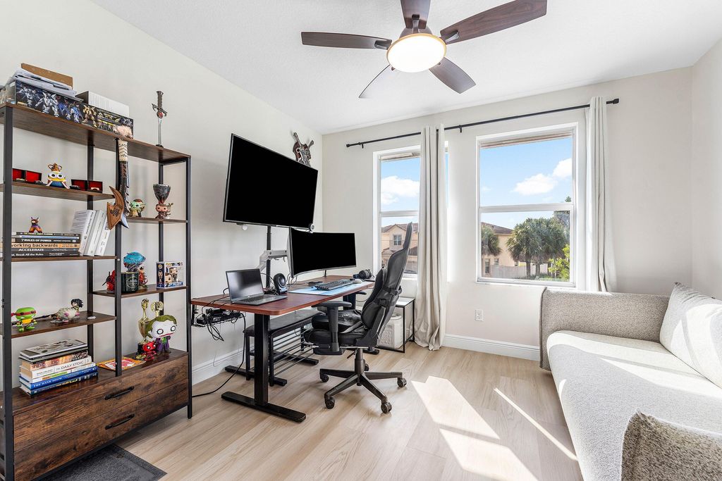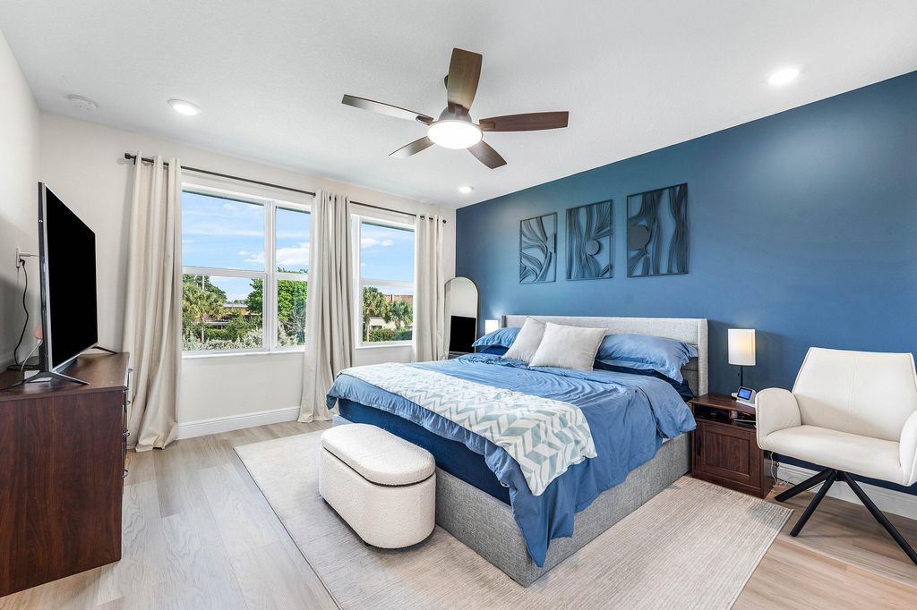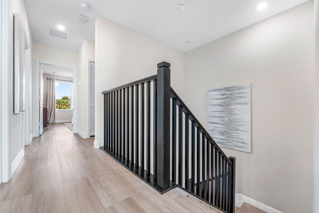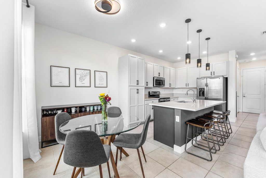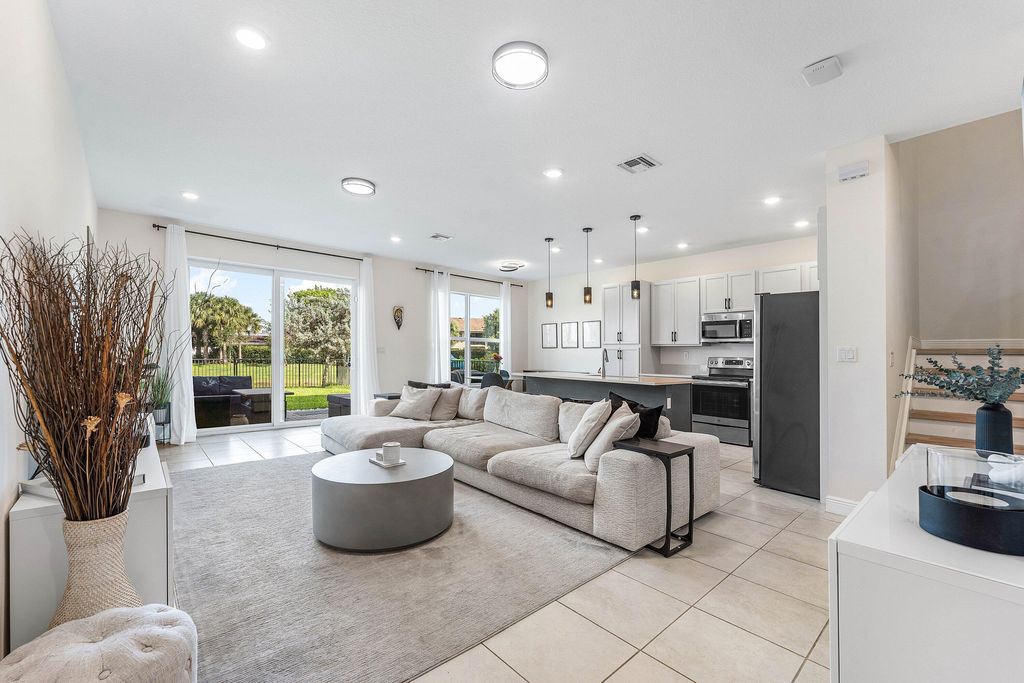 Enjoy stunning lake views from this modern townhouse, built in 2020 by Lennar. Featuring 3 bedrooms and 2.5 bathrooms, this home is designed with style and functionality in mind. The kitchen boasts quartz countertops, soft-close cabinetry, a new dishwasher, and a spacious island with seating--perfect for entertaining. The open-concept living area includes additional storage tucked behind the staircase.Upstairs, you'll find all bedrooms with new flooring along with a convenient laundry room featuring a new washer and dryer. Every window is protected with hurricane-impact glass for peace of mind.